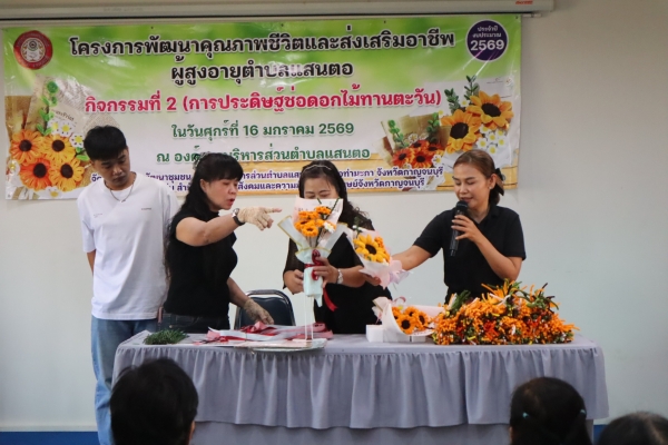 เมื่อวันที่ 16 มกราคม 2569 องค์การบริหารส่วนตำบลแสนตอ อำเภอท่ามะกา จังหวัดกาญจนบุรี สำนักปลัด งานพัฒนาชุมชน ได้จัดกิจกรรม " โครงการพัฒนาคุณภาพชีวิตและส่งเสริมอาชีพผู้สูงอายุตำบลแสนตอ " โดยมีการจัดกิจกรรมที่ 1 ออกกำลังกายตาราง 9 ช่อง กิจกรรมที่ 2 ประดิษฐ์ช่อดอกไม้ทานตะวัน และกิจกรรมร่วมกับหน่วยงานการศึกษานอกโรงเรียนอำเภอท่ามะกา(กศน.) รณรงค์เกี่ยวกับการไปใช้สิทธิ์เลือกตั้งสมาชิกสภาผู้แทนราษฏร ในวันอาทิตย์ที่ 8 กุมภาพันธ์ 2569 การดำเนินโครงการเป็นไปด้วยความเรียบร้อย องค์การบริหารส่วนตำบลแสนตอ ขอขอบคุณทีมวิทยากร และผู้เข้าร่วมกิจกรรมโครงการฯ ทุกท่านเป็นอย่างสูงมา ณ โอกาสนี้